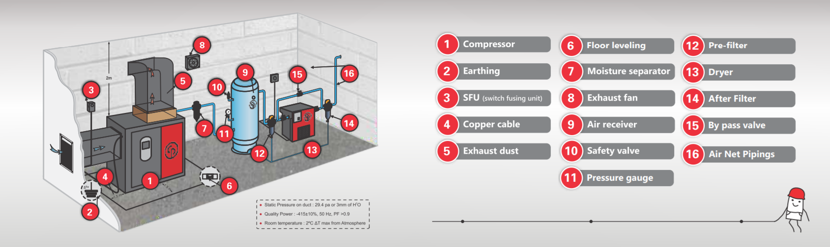 on how to design your compressor room or workplace. This helps you to